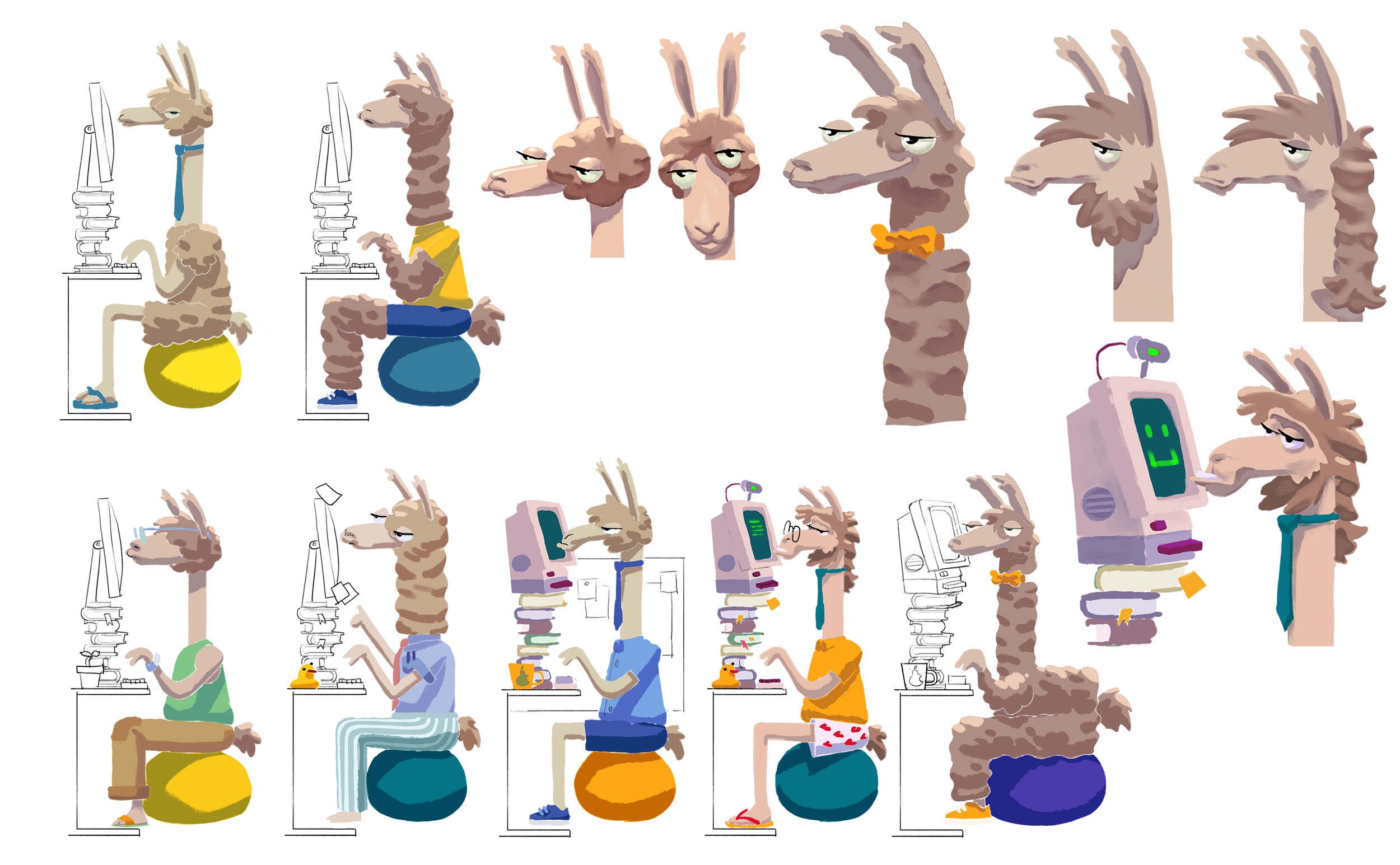 We experimented with a number of textures on the flesh and fur to achieve the final look, which had to show slight thumb marks as it he was handled by hands. The wool was to appear textural in contrast to the skin, which involved more experimentation, ensuring the final look was cohesive. We enjoyed adding fun little details to the motion on this short, including the llama chewing as he worked, and the little splash of coffee in the end as it falls back into the mug!